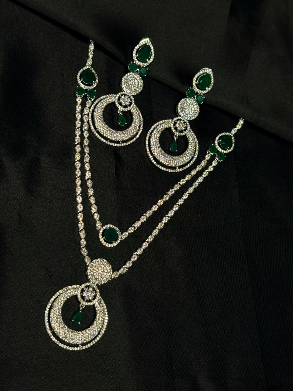 A stunning necklace set featuring sparkling silver stones paired with elegant green tear-drop pendants. Perfect...