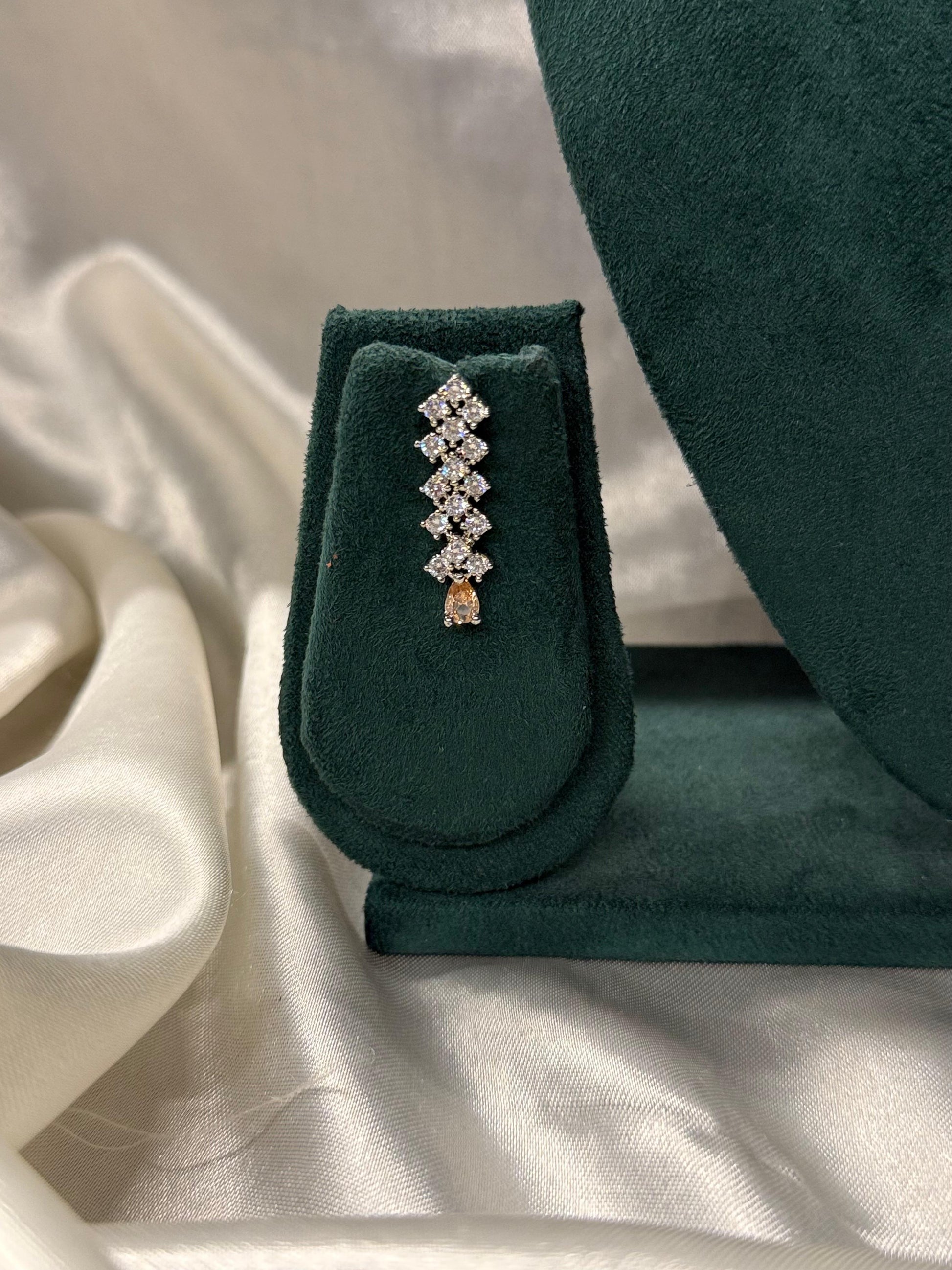 Adorn yourself with this stunning silver cubic zirconia necklace set featuring shimmering champagne gold teardrop stones for a rich, elegant look. Paired with matching CZ earrings, this sophisticated jewelry set is perfect for weddings, receptions, and special occasions.
